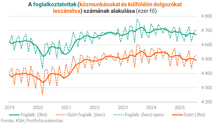 - Idén augusztus és október között a foglalkoztatottak átlagos létszáma (a 15–74 évesek körében) 4 millió 672 ezer fő volt, 31 ezerrel kevesebb, mint egy évvel korábban - jelentette a KSH.