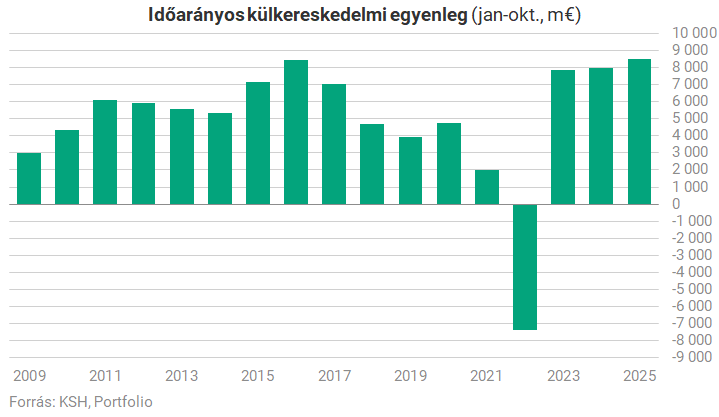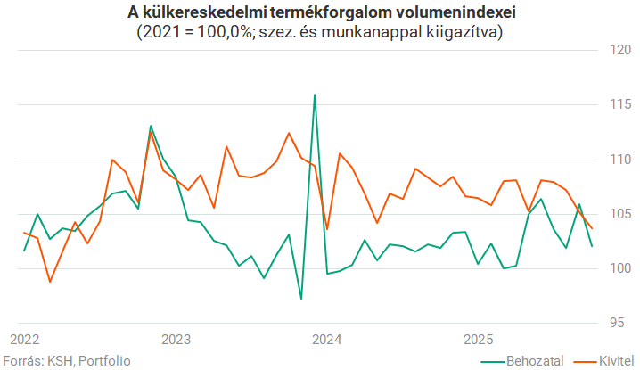 A KSH adatai szerint a kivitel volumene a negyedik negyedév első hónapjában 3,1%-kal alacsonyabb, a behozatalé 1,1%-kal magasabb volt az előző év azonos időszakinál. Ráadásul a kiviteli teljesítmény úgy volt nagyon gyenge, hogy az energiahordozók (zömében csak az országon átfutó) kivitele még tompította is az esést. Eközben a gépek, szállítóeszközök, valamint a feldolgozott termékek exportja jelentősen esett. Az export októberi volumene hároméves mélypontot jelent.