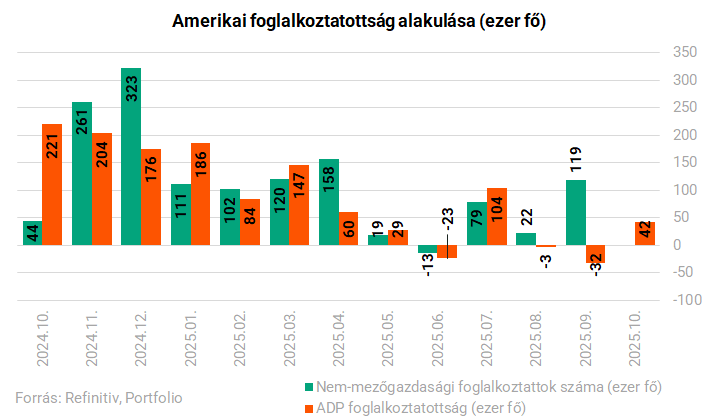 Sokáig úgy tűnt, hogy minden félelem ellenére az amerikai munkaerőpiaccal nincs nagy baj, az képes lesz ellenállni a magasabb gazdaságpolitikai bizonytalanságnak és a kereskedelmi háborúnak is. Idén ősszel aztán a kormányzati leállás elég nagy ködöt hozott az adatokban, így azóta inkább csak találgatnak az elemzők, ám