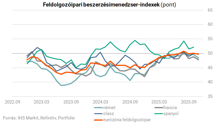 Az összetett BMI is pozitív tartományba került: az októberi 47,7 pontról novemberben 50,4-re emelkedett, felülmúlva a 49,9 pontos előzetes becslést. A feldolgozóipari kibocsátás eközben tovább csökkent, növelve a különbséget a két ágazat között.