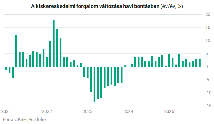 Ennek eredményeként január és október között éves alapon 2,9 százalékkal nőtt a kiskereskedelmi forgalom.