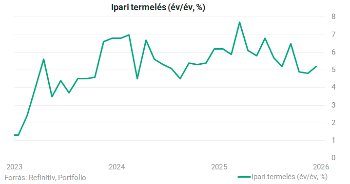 Az ipari termelés árnyaltabb képet mutat: a szektor hozzáadott értéke 2025 egészében 5,9 százalékkal nőtt, decemberben 5,2 százalékos ütemet mutatott. A magas technológiájú gyártás 11 százalékkal bővült decemberben – a leggyorsabban 2024 áprilisa óta. Az ipari robotok termelése 14,7, a félvezetőké 12,9 százalékkal nőtt, az új energiájú járművek és az energiatermelő berendezések gyártása 8,7 százalékkal emelkedett.