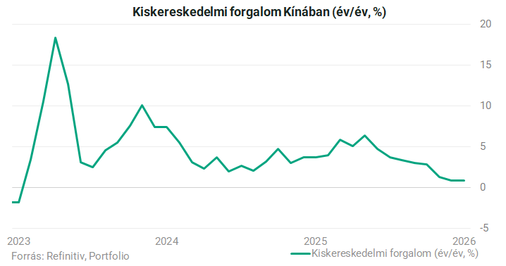 A legnagyobb probléma, hogy a Kínai Kommunista Párt minden próbálkozása ellenére a belső kereslet viszont egyértelműen gyenge. A kiskereskedelmi forgalom növekedése 2025 májusában még 6,4 százalékon tetőzött, decemberre 0,9 százalékra esett vissza.