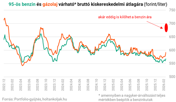 Ami pedig a hazai üzemanyagárakat illeti: Bujdos Eszter, a holtankoljak szakértője szerint az iráni háború miatt megugró olajár önmagában kb. 30 forinttal drágíthatja a benzin literét, és ehhez nincs még hozzátéve a devizahatás és a logisztikai többletköltségek.