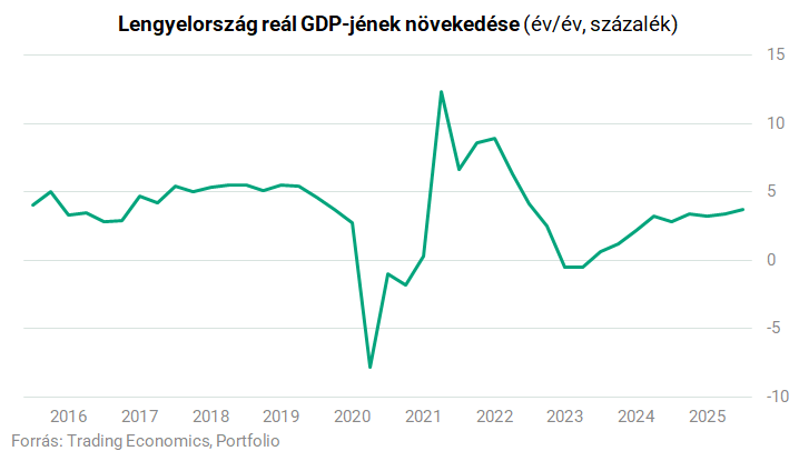 Az ING becslése szerint 2026 első negyedévében a GDP-növekedés éves alapon 3,6-3,8 százalék közé lassult. Ebben szerepet játszottak a kedvezőtlen időjárási viszonyok, amelyek különösen az építőipart és az ipart érintették hátrányosan, valamint az iráni konfliktus körüli bizonytalanság. A nyersolaj árának esetleges tartós emelkedése nemcsak az inflációt növelhetné, hanem a gazdasági növekedést is visszafoghatná. Az ukrajnai háború továbbra is rontja a magánszektor beruházási hajlandóságát, amit az iráni helyzet tovább súlyosbíthat. A lengyel gazdaság kilátásait értékelő elemzés végé az ING szakértői megerősítették a teljes évre vonatkozó 3,7 százalékos GDP-növekedési előrejelzést és megállapították, hogy a 4 százalék feletti várakozások a jelenlegi helyzetben túlzottan optimisták.