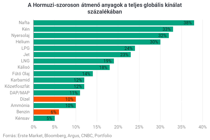 A Hormuzi-szoros körüli katonai kockázatok és a tengeri szállítás szünetelése nemcsak a nyersolaj, hanem az olajtermékek nemzetközi áramlását is érzékenyen érinti, ami rövid idő alatt beépül az árakba és regionális kínálati feszültségeket és jelentős átárazódást okozhat, ezt látjuk most.