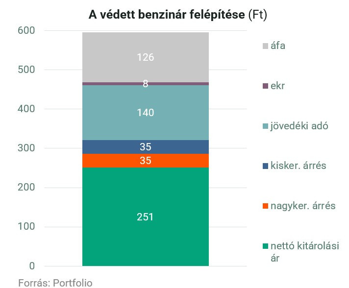 - nettó 251 forinton adja ki a nagykereskedőnek a benzin literjét és ezt 286 forinton adhatja tovább a nagykereskedő a kiskereskedőnek és