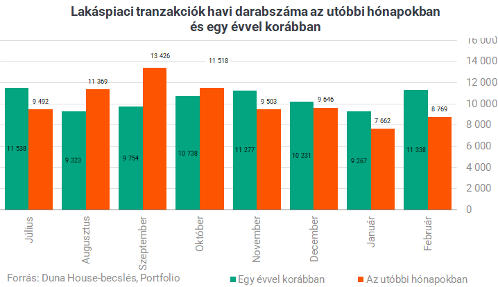 A januári gyenge kereslet rányomta a bélyegét a februári adásvételekre is a hazai ingatlanpiacon. A DH becslése szerint februárban 8 769 ingatlan tranzakció történt. Ez ugyan