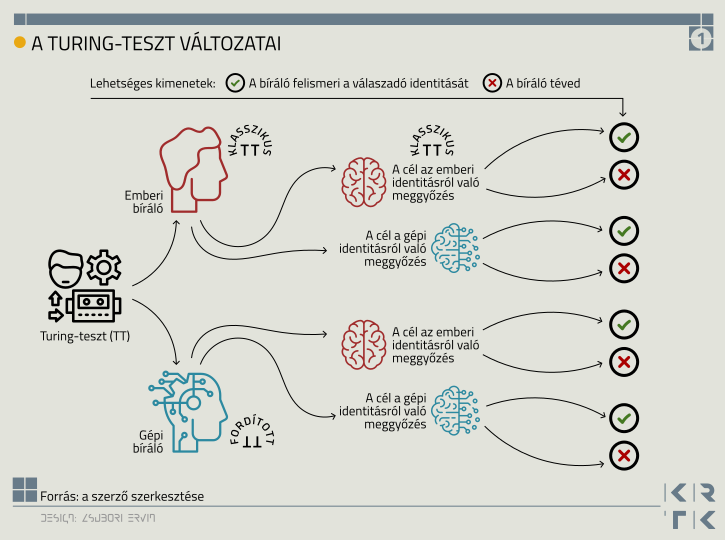 Ha nem ragaszkodunk a Turing-teszt klasszikus, 1950-es formájához, a bíráló szerepét átruházhatjuk emberről gépre. Ezt a megközelítést nevezzük fordított Turing-tesztnek. A teszt ilyen módon történő módosítása nyolc lehetséges kimenetelhez vezethet (lásd 1. ábra).