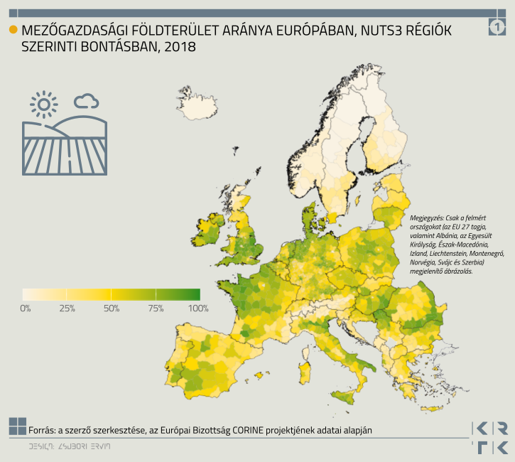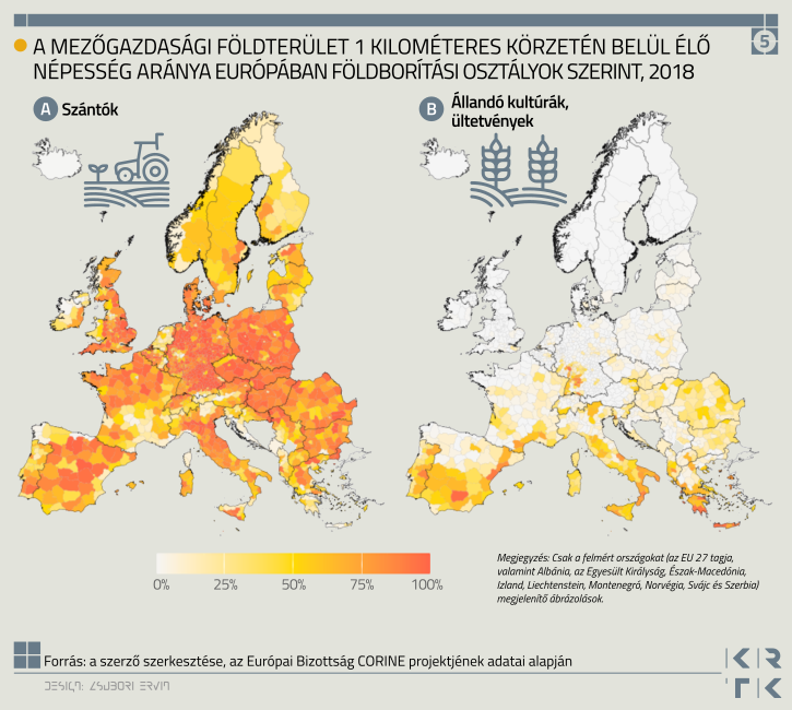 A kutatás azt vizsgálta meg, hogy a lakosság mekkora része él különböző távolságra a legközelebbi mezőgazdasági területtől Európában (2006, 2012, 2018). A kép nagyon erős: