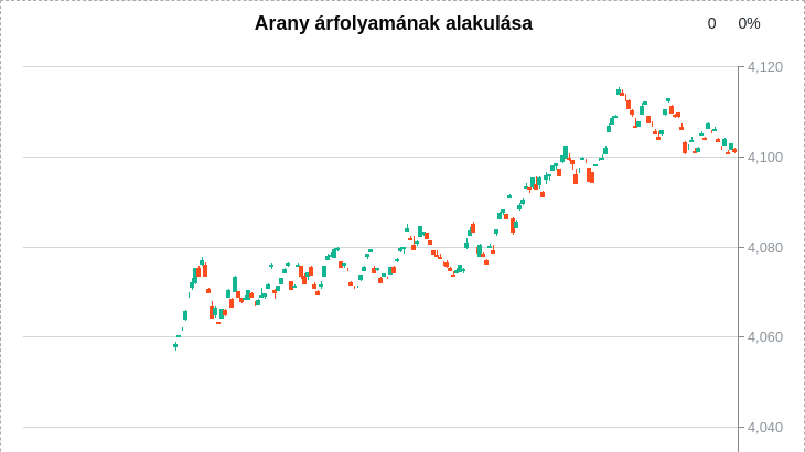 Ma este ismét történelmi csúcsot döntött az arany árfolyama, elérve a 4 116 dolláros unciánkénti jegyzést. A gázai tűzszüneti megállapodás hírére aztán az árfolyam is esni kezdett, jelenleg pedig 4 100 dollár környékén jár.
