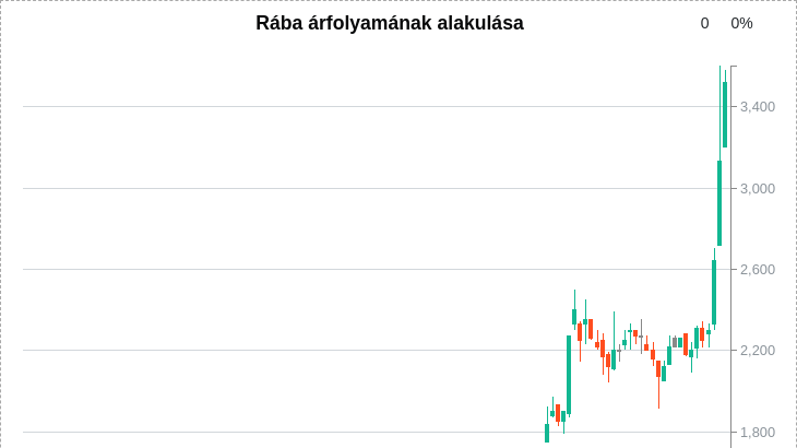 Masszív átárazódást láthatunk a Rábánál, mióta kiderült, hogy a 4iG lesz az új nagytulajdonos, száguld az árfolyam, ma újabb 10 százalékot emelkedett, amivel az elmúlt 3 napban másfélszeresére nőtt az árfolyam.