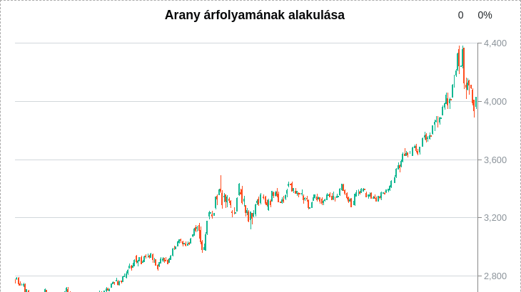 Az arany ára idén eddig mintegy 52 százalékkal emelkedett, és október 20-án 4 381,21 dolláros történelmi csúcsot ért el. A drágulást a geopolitikai és gazdasági bizonytalanságok, a kamatvágási várakozások és a jegybankok tartós vásárlásai támogatták.