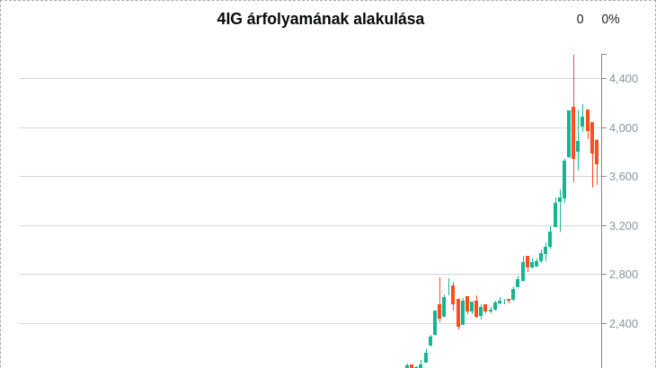 A Rábához hasonlóan a 4iG-ben is olt egy nagyobb profitrealizálás, a csúcsról már 23 százalékot esett az árfolyam, csak ma 4 százalékkal került lejjebb, ráadásul nagy forgalommal esik, ma az OTP mögött a 4iG a második legforgalmasabb papír a magyar tőzsdén, 1,3 milliárd forintos forgalommal.
