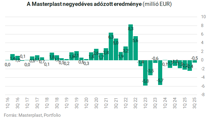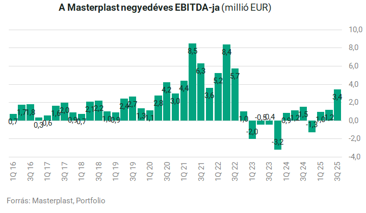 A harmadik negyedév végére a Masterplast pénzeszközállománya 13,3 millió euróra emelkedett, ami biztosítja a társaság működésének finanszírozását, valamint fedezetet nyújt a negyedik negyedévben esedékes kötvénytörlesztéshez is a cég közlése szerint.