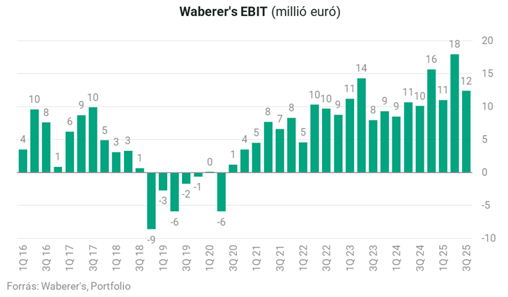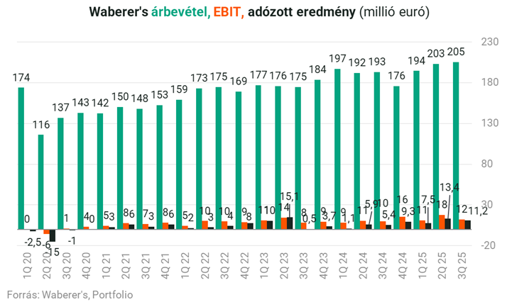 A Waberer’s harmadik negyedéve nemcsak a számokban erős, hanem a minőségében is meggyőző: a 205,4 millió eurós konszolidált árbevétel 7,8 százalékos bővülést jelent, a 27,3 millió eurós EBITDA 11,9 százalékos emelkedést, a 12,4 millió eurós EBIT pedig 23,3 százalékos ugrást mutat év/év alapon.