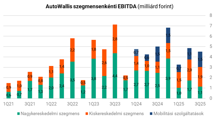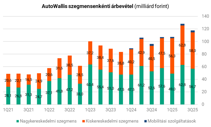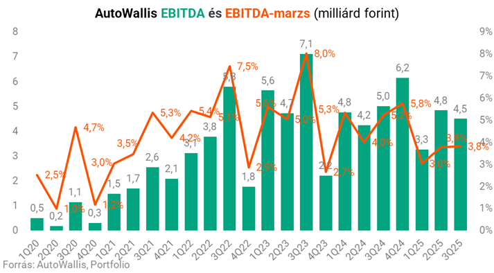Az AutoWallis 2025 első három negyedévében tartani tudta növekedési pályáját: a forgalom és az értékesített járművek száma tovább emelkedett, a cég piaci súlya a kiterjesztett adatok szerint már 433 milliárd forintos árbevételt és 15,3 milliárd forintos EBITDA-t képvisel. Ugyanakkor az organikus és akvizíciós bővüléssel járó költségek, a gyengébb gyártói kampányok, a KGM és bizonyos prémium márkák visszaesése, valamint a magasabb működési és pénzügyi ráfordítások együttesen lejjebb tolták az EBITDA- és adózás előtti eredmény szintjét.