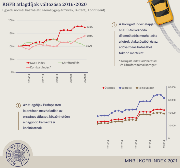 A jegybank negyedévente teszi közzé a kgfb díjak és károk alakulását bemutató indexét, az általa működtetett, biztosító adatszolgáltatáson alapuló Központi Kgfb Tételes Adatbázis (KKTA) segítségével. A közzétett adatok az átlagos változást mutatják, az egyedi kgfb szerződéseknél ezek mértéke eltérő lehet. Ha egy ügyfél egyedi szerződését áttekintve nincs megelégedve kgfb díjával és/vagy a szolgáltatás minőségével, szerződéskötési évfordulóján lehetősége van a számára legkedvezőbb biztosítási ajánlat kiválasztására és új szerződés megkötésére.