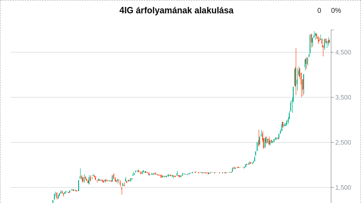 A 4iG árfolyama több mint az ötszörösére emelkedett idén, ahogy sorra érkeztek a hírek a védelmi üzletág kiépítésével kapcsolatban, amit láthatóan pozitívan fogadtak a befektetők.