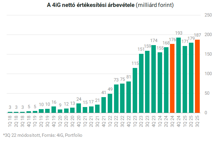 187 milliárd forintos bevételt ért el a 4iG a harmadik negyedévben, ami 6 százalékos növekedés az előző év azonos időszakához képest - derül ki a negyedéves gyorsjelentésből.
