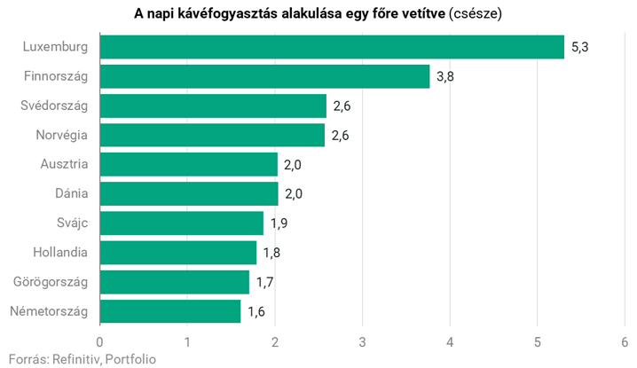Luxemburg vezeti a globális rangsort, naponta fejenként 5,31 csészével