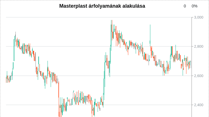 A Masterplast árfolyama ma stagnál, idén már 6 százalékot emelkedett, amivel alulteljesítő a magyar tőzsdén, a BUX index 38 százalékot ralizott 2025-ben.