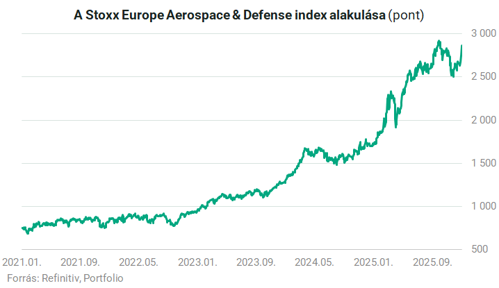 a Stoxx védelmi ipari alindexe (Stoxx Aero/Defense) több mint 8 százalékot szárnyalt.