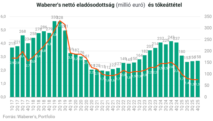 A cégcsoport pénzügyi helyzete jelentősen erősödött. A működési cash flow látványosan, 200 millió euróra ugrott, ami nagyrészt a biztosítási ágazat térnyerésének tudható be. Papíron a vállalat eladósodottsága is meredeken csökkent. A vezetés ugyanakkor felhívta a figyelmet egy fontos részletre: a biztosítói tevékenység speciális számviteli hatásait kiszűrve a hitelállomány konzervatívabb, de továbbra is stabil képet mutat. A nettó eladósodottság a negyedév végén 158 millió euró volt, a tőkeáttétel pedig 1,3-szoros.