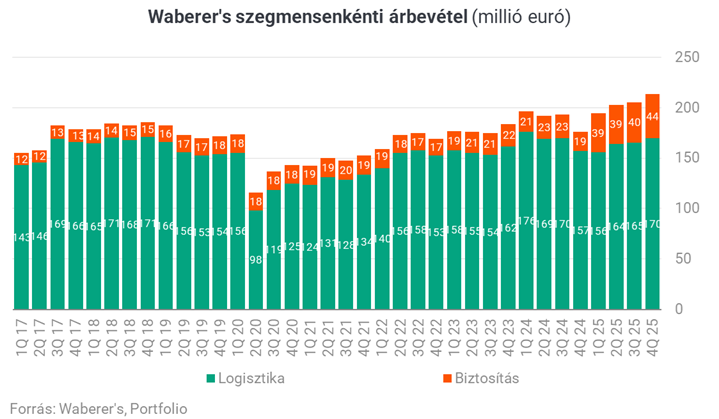 Ebben megint csak a biztosítási szegmenst kell kiemelni, melynek árbevétele negyedéves szinten 43,5 millió eurót ért el, ami 134 százalékos ugrást jelent. A logisztikai szegmens is jobban nézett ki a negyedik negyedévben, 3,1 százalékos bevételnövekedést jelentett a cég, bár ebben technikai hatásként szerepel, hogy a szerb MDI vállalat teljesen bekonszolidálásra került a második negyedévtől. Emellett az elmúlt időszak üzletfejlesztéseinek (hulladék logisztikai volumenek bővülése, szlovákiai operáció felfutása és 3. feles raktárfejlesztés) eredménye, melyek ellensúlyozták a kieső autóipari inhouse logisztikai bevételeket 2025 utolsó negyedévében.